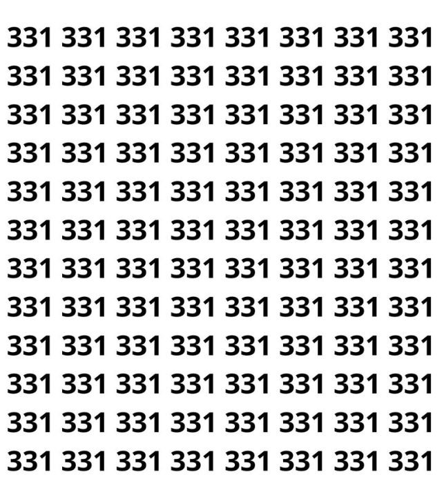 Em meio a dezenas de “331”, o número “313” estava habilmente camuflado. Quem conseguiu achar em menos de 11 segundos faz parte dos 25% que superam este teste de percepção visual.