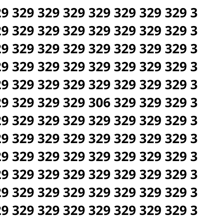 O número 306 estava no centro da imagem. Ele se destaca sutilmente entre os números 329, exigindo observação detalhada e rapidez de raciocínio. A dificuldade vem da semelhança visual e do limite de 7 segundos.