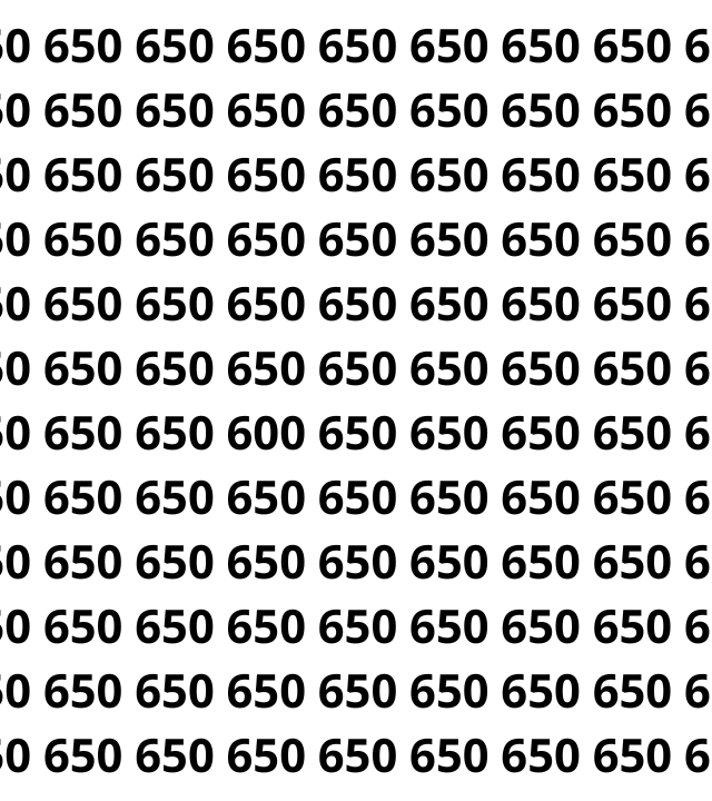 Se você tentou encontrar o número, aqui está: o número diferente entre os 650 é 600, localizado próximo ao centro da imagem. Sua posição entre os outros números iguais exige atenção total para ser identificado corretamente.