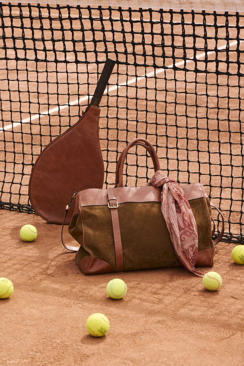 O primeiro modelo é confeccionado em couro e camurça e traz um diferencial central: uma capa removível para acomodar a raquete. Dessa forma, a peça transita entre a sofisticação e o uso esportivo, acompanhando treinos e compromissos do cotidiano.