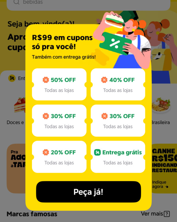 Cupons de R$ 99 e entrega grátis para novos usuários