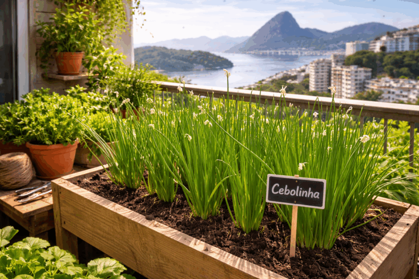 Existem vários tipos de cebolinha: a cebolinha comum, a nirá japonesa e a cebolinha francesa mais fininha, entre outras. Para iniciantes, a variedade comum costuma ser a preferida, por ser resistente, versátil e se adaptar bem a pequenos espaços.