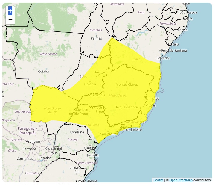 O aviso do Inmet é válido para diversas cidades do Estado do Rio de Janeiro, incluindo Niterói, São Gonçalo, Maricá, Itaboraí, Rio de Janeiro e Baixada Fluminense.