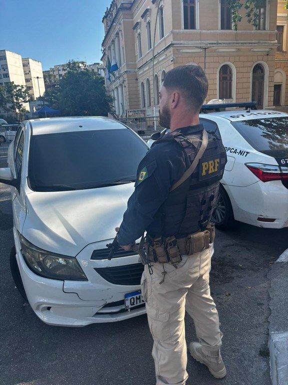 A Polícia Rodoviária Federal (PRF) recuperou, na tarde deste domingo (7), um carro roubado e clonado que circulava com sinais identificadores adulterados em Niterói, na Região Metropolitana do Rio.