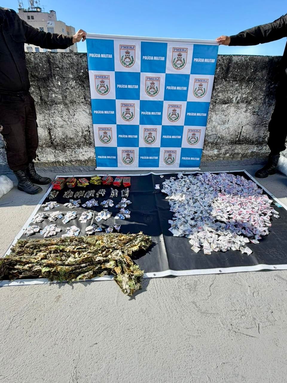“Policiais militares do 12º BPM apreenderam nesta quinta-feira (24) 1.050 pinos de cocaína, 280 trouxas de maconha e uma roupa ghillie na comunidade da Chácara, no Centro de Niterói. O caso foi encaminhado à 76ª DP”, informou a corporação.