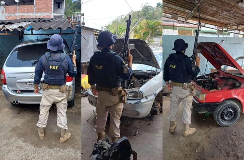 Durante a inspeção, os policiais constataram que dois veículos tinham motores adulterados, diferentes dos cadastrados no sistema do Detran. Ambos estavam vinculados a registros de roubo.