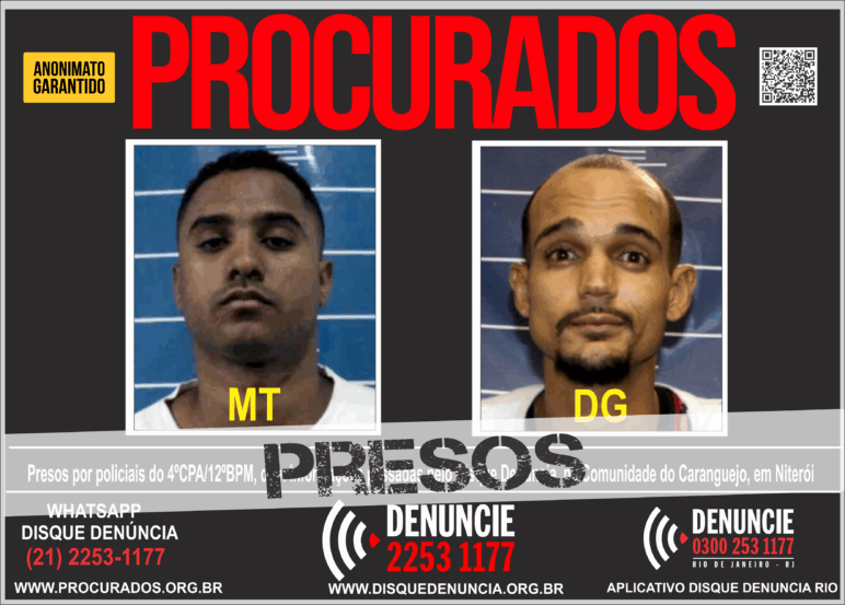 Ainda segundo o registro, Diego Fonseca Medeiros e “MT” foram autuados por tráfico de drogas e associação para o tráfico. Depois dos trâmites legais, eles foram conduzidos a uma unidade prisional de SEAP/RJ, onde já se encontram acautelados à disposição da Justiça.