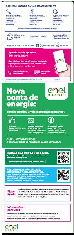 A partir de 3 de janeiro, os clientes da Enel Distribuição Rio passam a receber a conta de energia com um layout mais moderno, com informações estruturadas e priorizadas conforme pesquisa com os clientes.