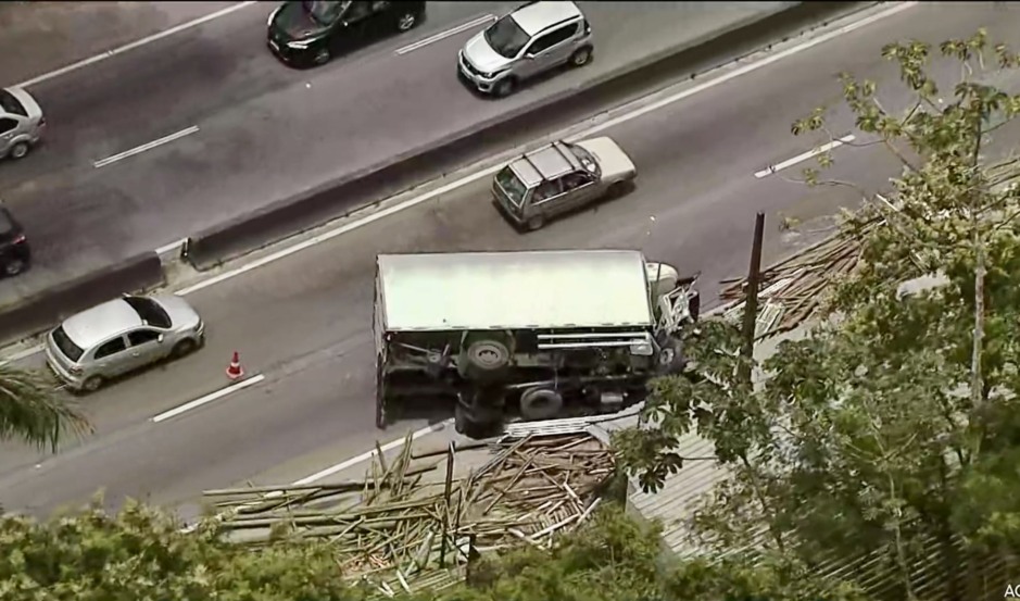 Segundo informações iniciais de testemunhas, um caminhão teria atingido a traseira de outro, o que provocou o tombamento de um dos veículos na pista. Não há, até o momento, confirmação de feridos.
