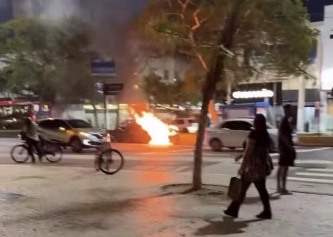 Um carro pegou fogo na noite deste sábado (18) na Avenida Visconde do Rio Branco, em frente à Drogaria Pacheco, próximo às Barcas, no Centro de Niterói. O incidente ocorreu por volta das 18h22 e provocou correria entre pedestres e lentidão no trânsito da região.