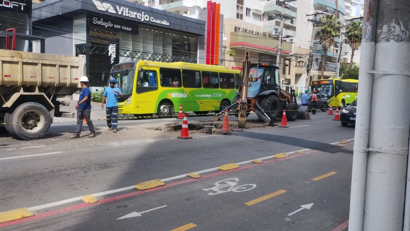 O motivo é um reparo emergencial da Águas de Niterói que ocupa parte da Avenida Roberto Silveira, entre a Rua Doutor Carlos Halfeld e a Avenida Sete de Setembro, em Icaraí.
