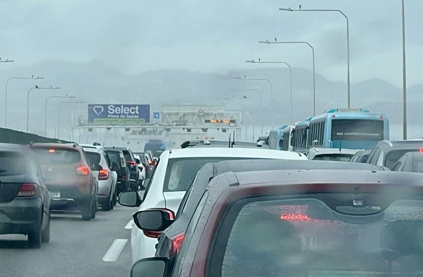 Às 7h, o tempo de travessia no sentido Rio de Janeiro já chegava a 40 minutos, com lentidão desde a descida do Vão Central até a Reta do Cais.