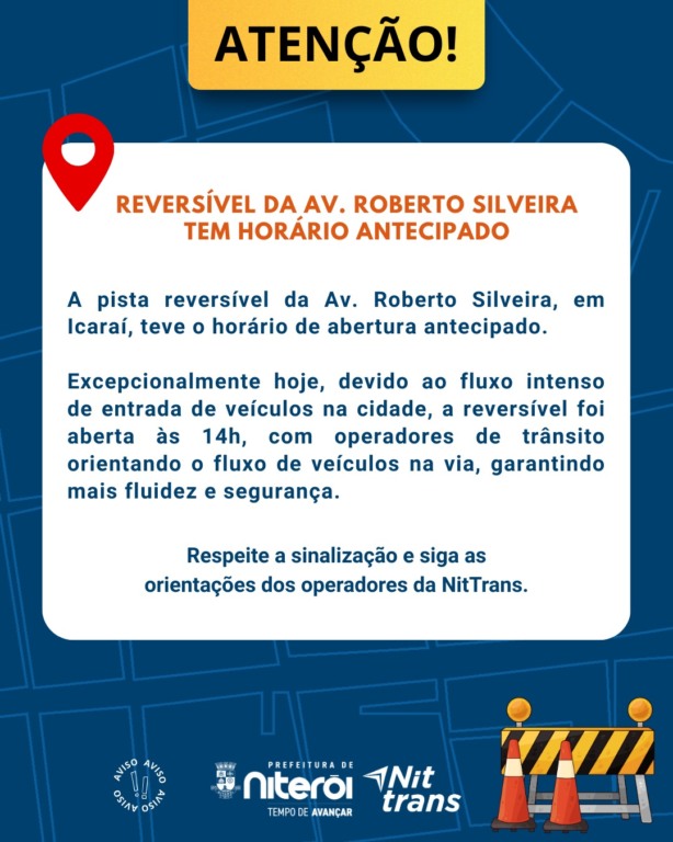 “Excepcionalmente hoje, devido ao fluxo intenso de entrada de veículos na cidade, a reversível foi aberta às 14h, com operadores de trânsito orientando o fluxo de veículos na via, garantindo mais fluidez e segurança”, informou a NitTrans.